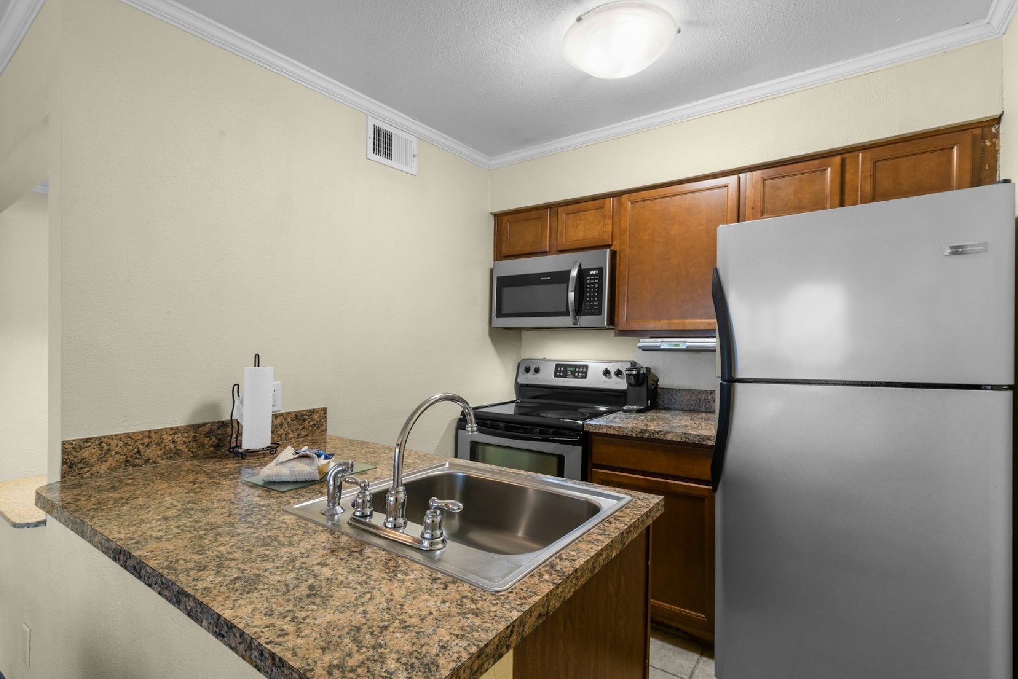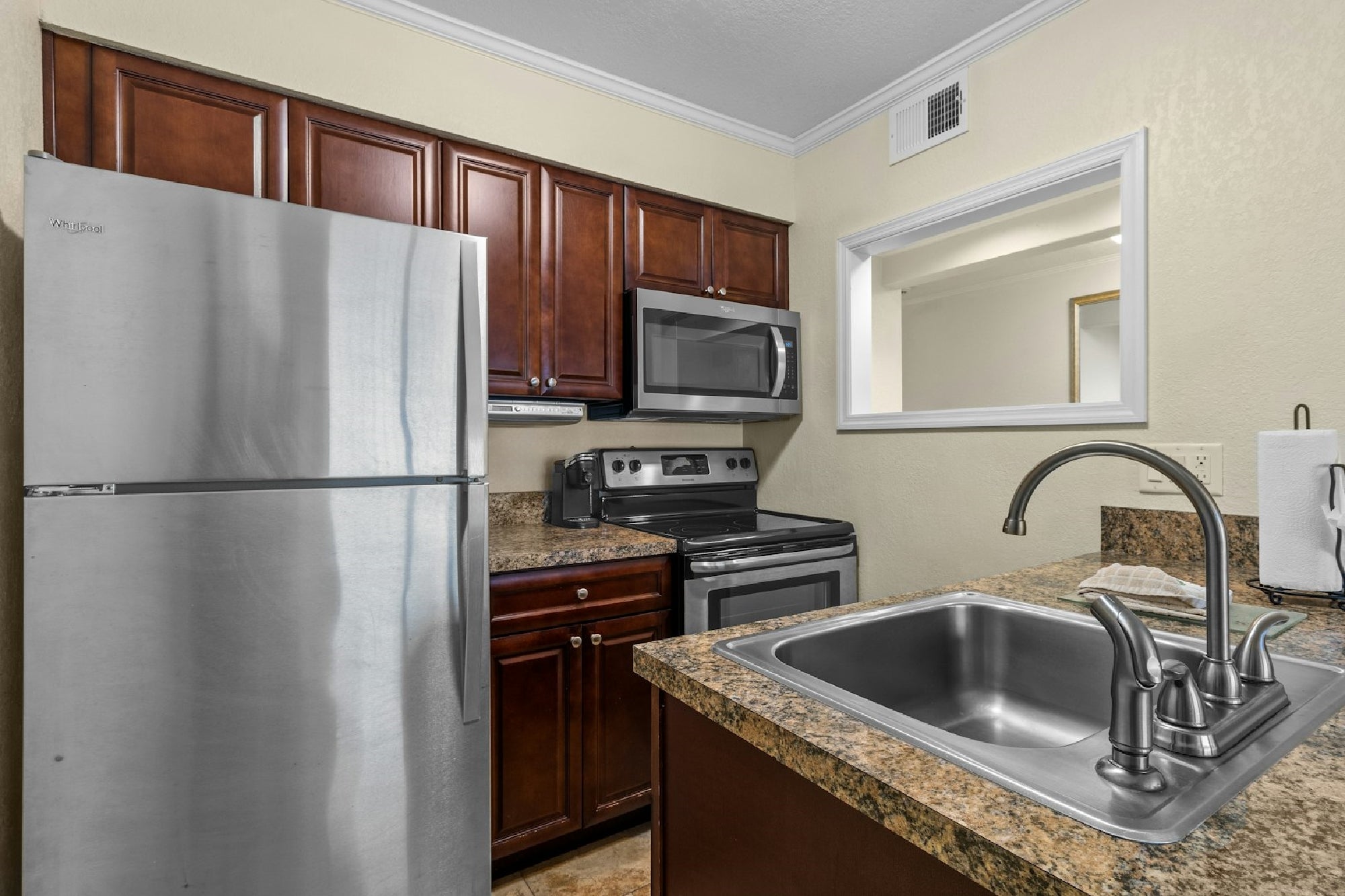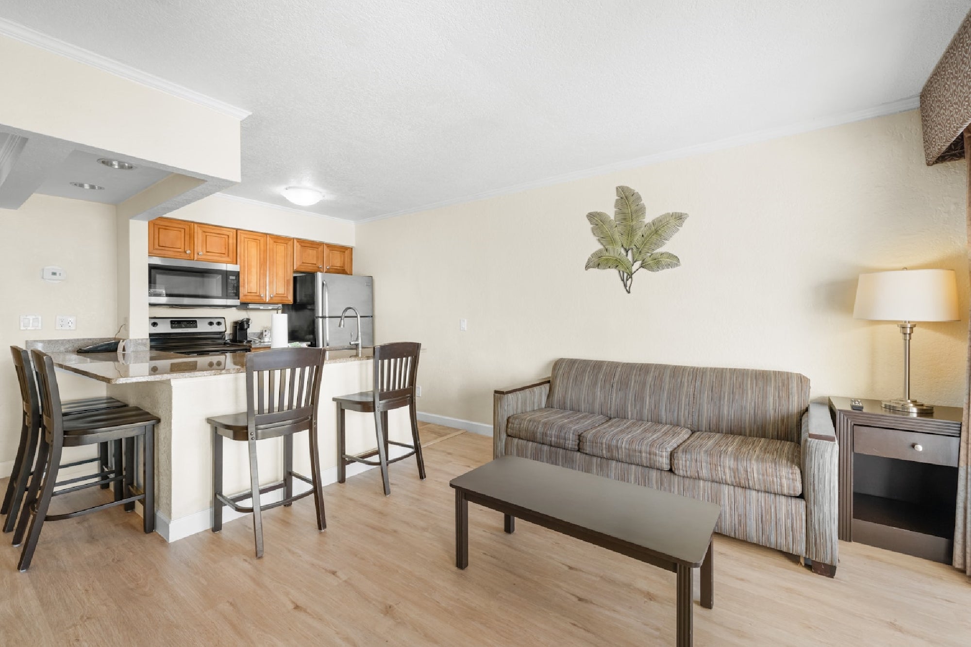 Yes. Each suite includes a full kitchen with a stovetop, refrigerator, and additional appliances.